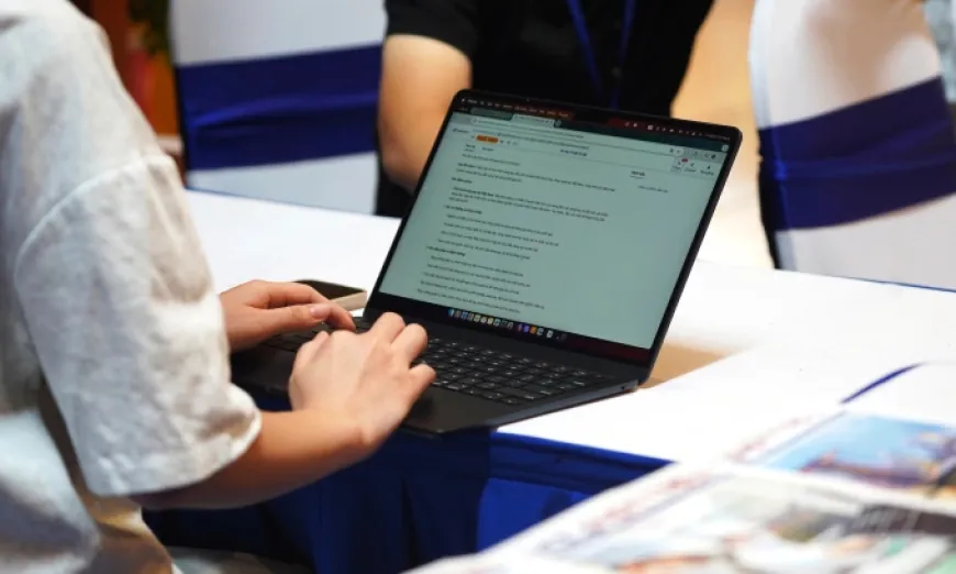 Phóng viên dùng công cụ AI hỗ trợ chuyển từ giọng nói sang văn bản và tổng hợp nội dung. Ảnh: Lưu Quý