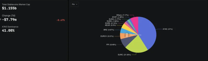 Sự tăng trưởng của A7A5 diễn ra ổn định trong mùa hè trước khi bùng nổ vào cuối tháng 9. Ngày 25 tháng 9, vốn hóa của token tăng 350 triệu USD chỉ trong một ngày, tương đương mức tăng 250%, vượt qua EURC của Circle để chiếm vị trí dẫn đầu phân khúc stablecoin phi-USD. Dữ liệu từ Elliptic cho thấy hơn 41 tỷ token A7A5 đang lưu hành vào ngày 26 tháng 9, với tổng khối lượng giao dịch vượt 68 tỷ USD.