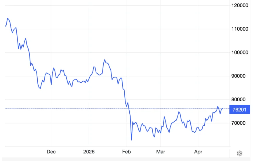 Giá bitcoin hiện dao động quanh ngưỡng 76.000 USD - theo dữ liệu từ trang Coinmarketcap.com. Giá của tiền số này đã chạm mốc 78.000 USD vào cuối tuần vừa rồi, cao nhất kể từ đầu tháng 2.