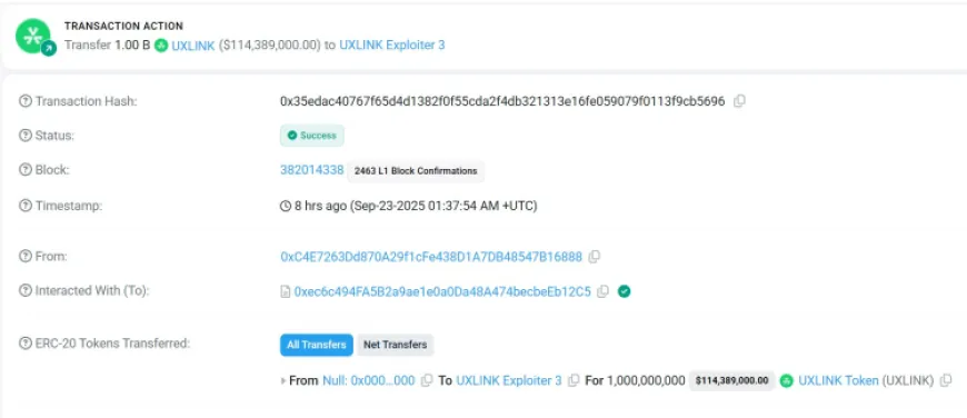 Sự cố bắt nguồn từ việc tác nhân độc hại xâm nhập thành công vào ví đa chữ ký của dự án vào ngày 23/9, tạo ra chuỗi sự kiện hỗn loạn với tổng thiệt hại ước tính vượt 30 triệu USD. UXLink đã ngay lập tức công bố vi phạm an ninh sau khi phát hiện lượng lớn tài sản mã hóa bị chuyển trái phép sang các sàn giao dịch tập trung và phi tập trung.